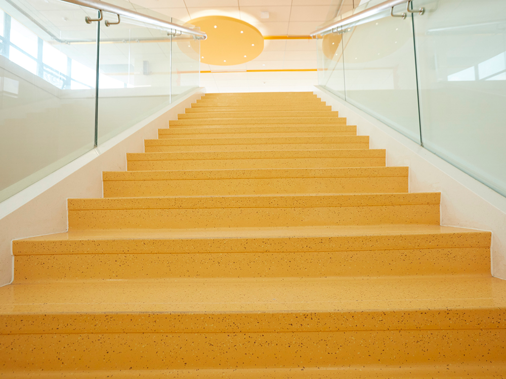 Te wykładziny są również odporne na intensywną eksploatację, co sprawia, że doskonale sprawdzają się w miejscach, gdzie codziennie przemieszcza się duża liczba osób. Dodatkowe opcje, takie jak pasy sygnalizacyjne lub bezpieczeństwa na powierzchniach schodowych, zwiększają widoczność, co ułatwia szybkie i bezpieczne wyjście w przypadku ewakuacji. Wysokie właściwości pochłaniania dźwięku (np. 12 dB dla modeli norament) zapewniają także komfort akustyczny, co może mieć znaczenie w trakcie masowych ewakuacji.